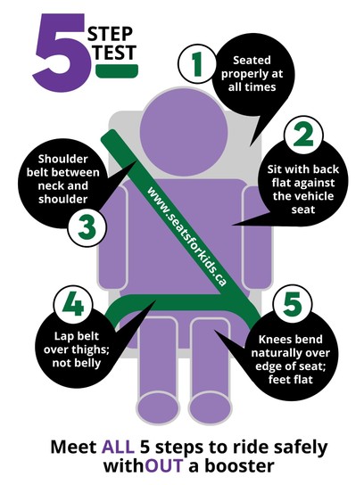 The ‘5-Step Test’ is an indicator that your child is ready for the belt-only. The test should be done in every seating position of each car, as it can be different.